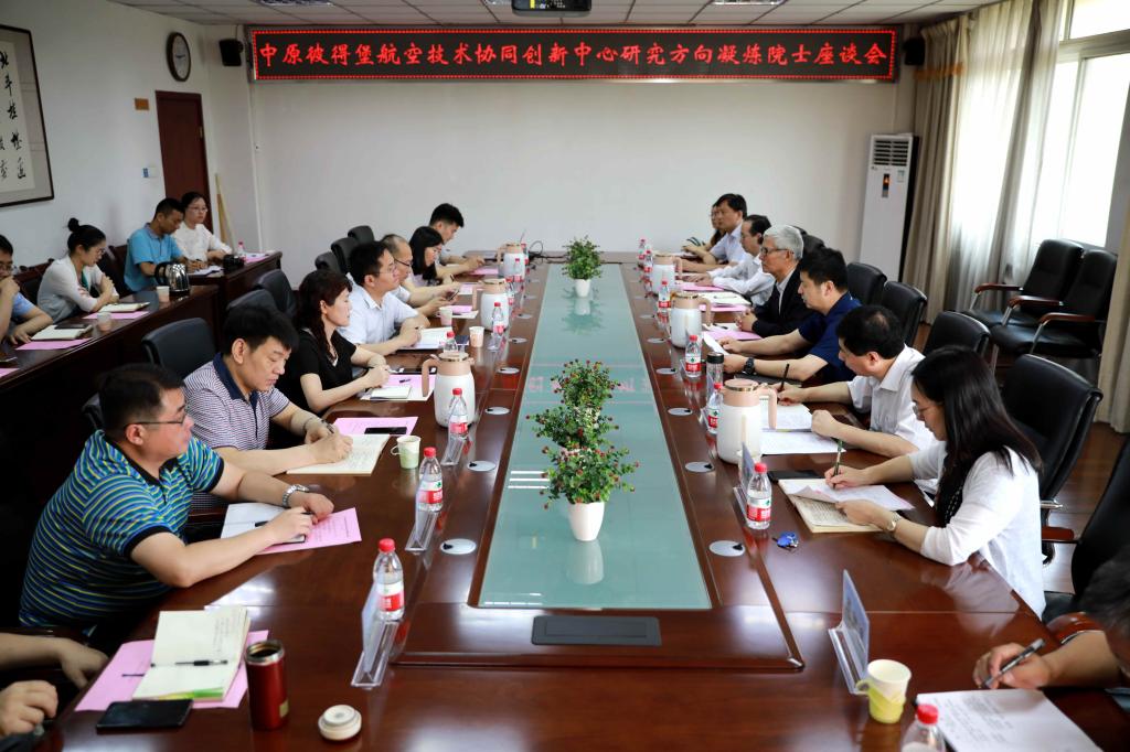 6月14日,我校在龙湖校区召开中原彼得堡航空技术协同创新中心研究方向凝炼院士座谈会。国家大飞机重大专项专家咨询委员会主任、中国工程院院士张彦仲,我校校长王宗敏、副校长黄健、刘洲峰,原副校长、中原彼得堡航空学院院长谷景立,党政办公室、人事处、科技处、社会科学处、研究生处和相关学院负责人参加座谈。会议由副校长刘洲峰主持。