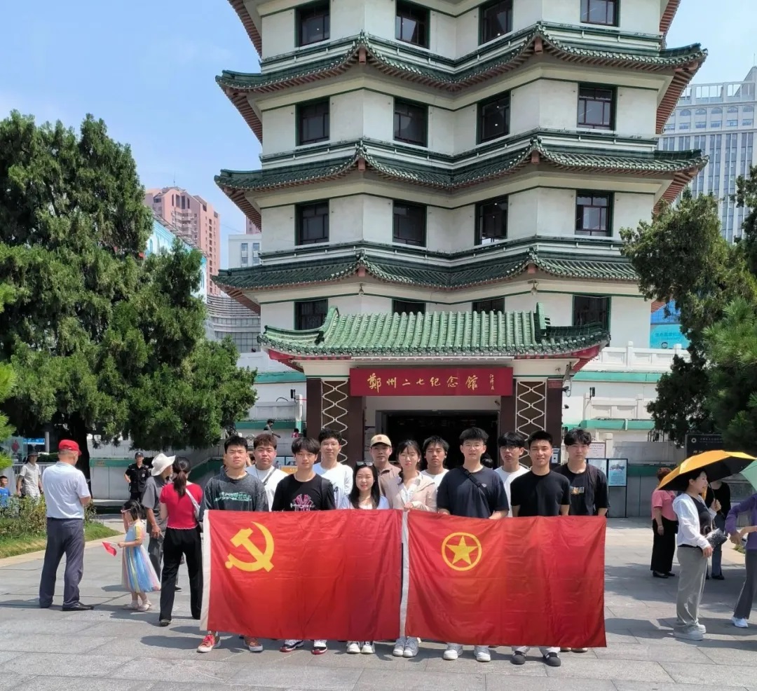 实践团成员们怀着对历史的深刻敬意,踏上了前往二七塔的庄严旅程。抵达目的地,一片宽广的广场映入眼帘,四周绿树环绕,静静地映衬着二七塔的雄伟身姿。二七塔,这座郑州的标志性建筑,它不仅是一部活的历史书,更是中国革命精神的象征。实践团成员们通过参观其内陈列的历史文物、文字资料和图片,身临其境地感受革命先烈在荒乱战争年代中激昂奋进、英勇无畏的斗争精神。