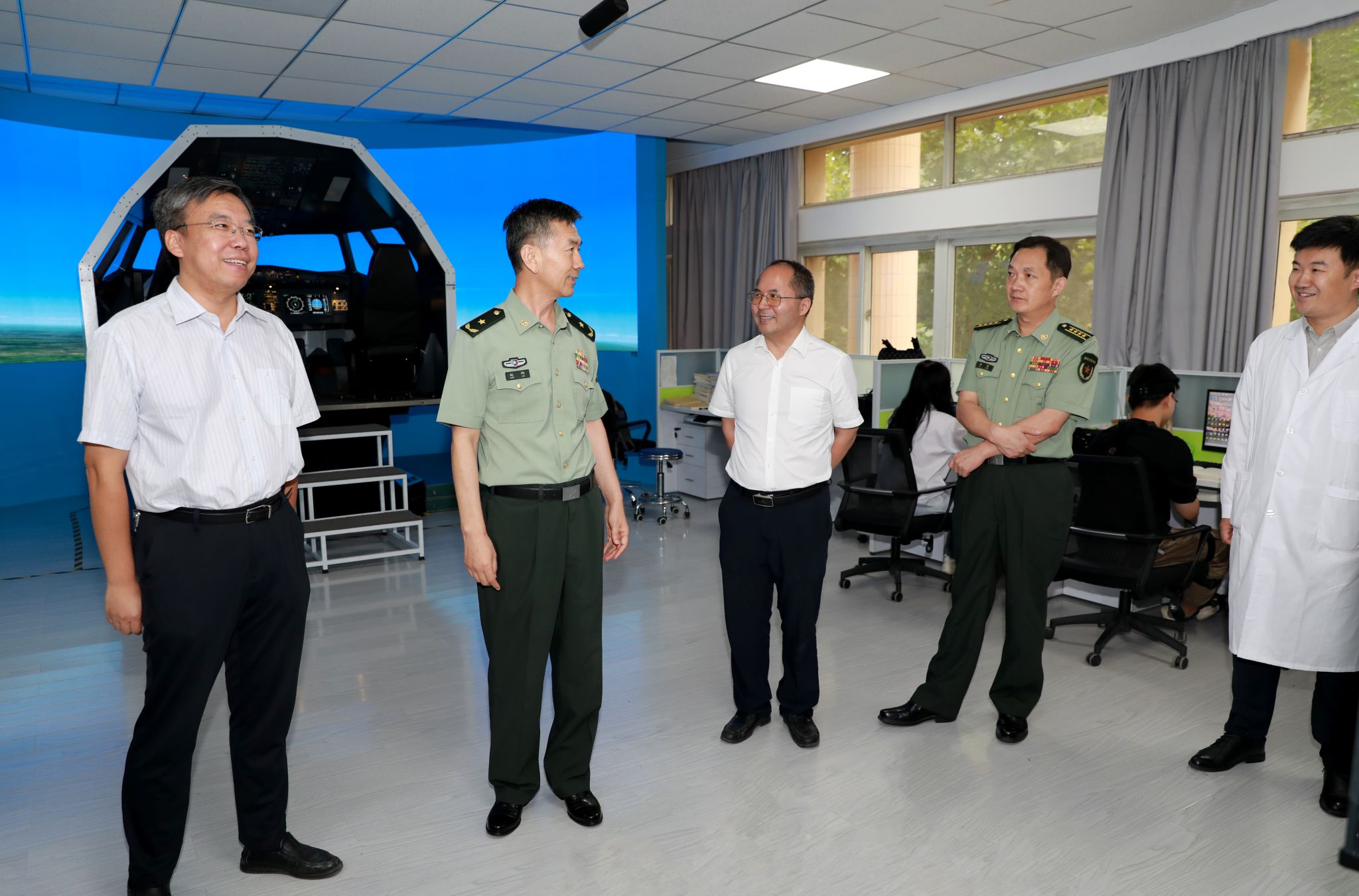 9月12日,省委常委、省军区少将司令员赵钧来到我校,调研了解河南电子科技大学筹建等情况,并给师生们讲授思政课。结束后,在学校党委副书记、校长夏元清,校党委副书记、工会主席宋晓炜,副校长瞿博阳陪同下来到我院。