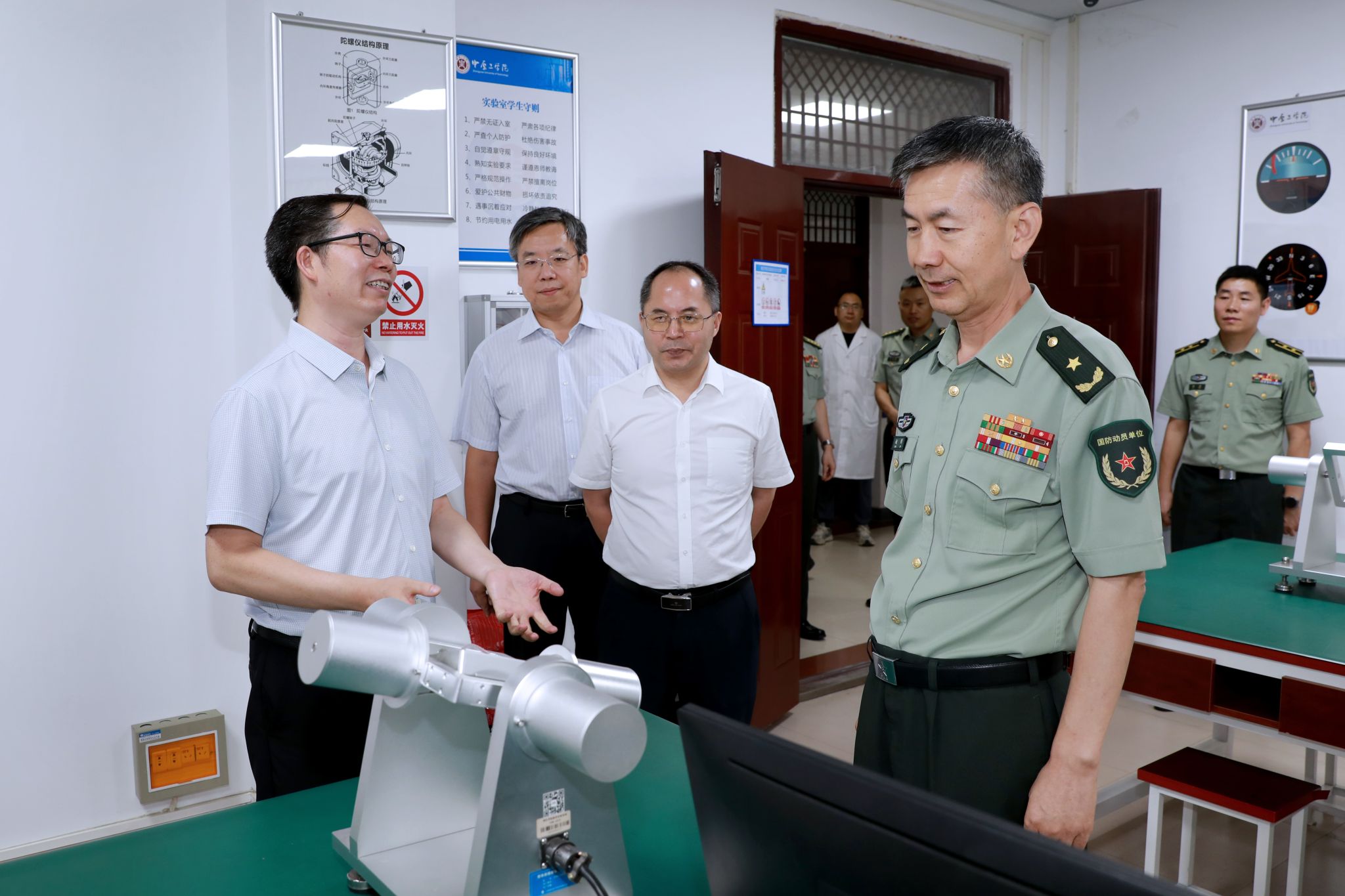 在我院中原彼得堡航空技术协同创新中心,赵钧认真听取了温盛军院长关于中心的建设情况,详细了解了我院与中电科第二十七所联合开发的天基WQ健康管理系统的进展情况。