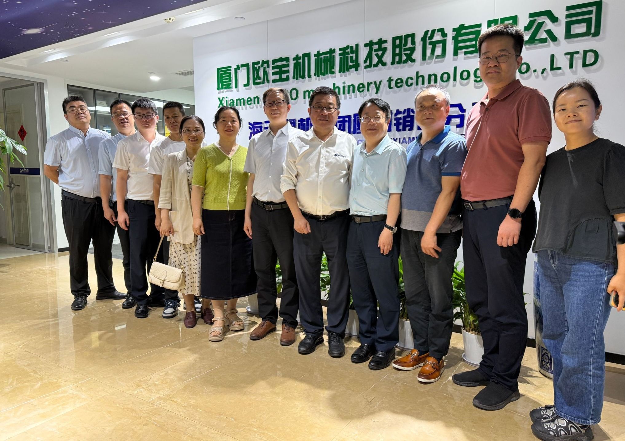 在厦门,付主木一行首先来到校友企业厦门欧宝机械科技股份有限公司。在与公司管理层及校友代表的座谈中,付主木详细了解了企业对相关工科人才的知识结构、实践能力和职业素养的具体要求。他同时向校友介绍了学校筹建河南电子科技大学的相关情况。双方围绕加强校友联系、精准对接毕业生就业需求等议题进行了坦诚务实的交流。与会校友分享了宝贵的行业经验,并为学校人才培养积极建言献策。厦门校友会原会长唐华、会长丘国强、秘书长沈锦添等十余名校友参加了座谈。