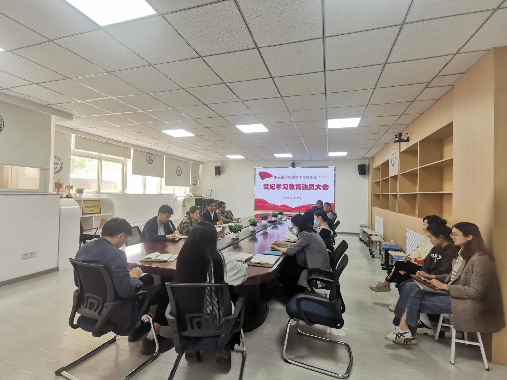 4月17日,中原彼得堡航空学院党总支召开了党纪学习教育动员会,安排部署学院党纪学习教育工作。会议由党总支书记轩信飞主持,院长温盛军列席,全体教工党员参会。