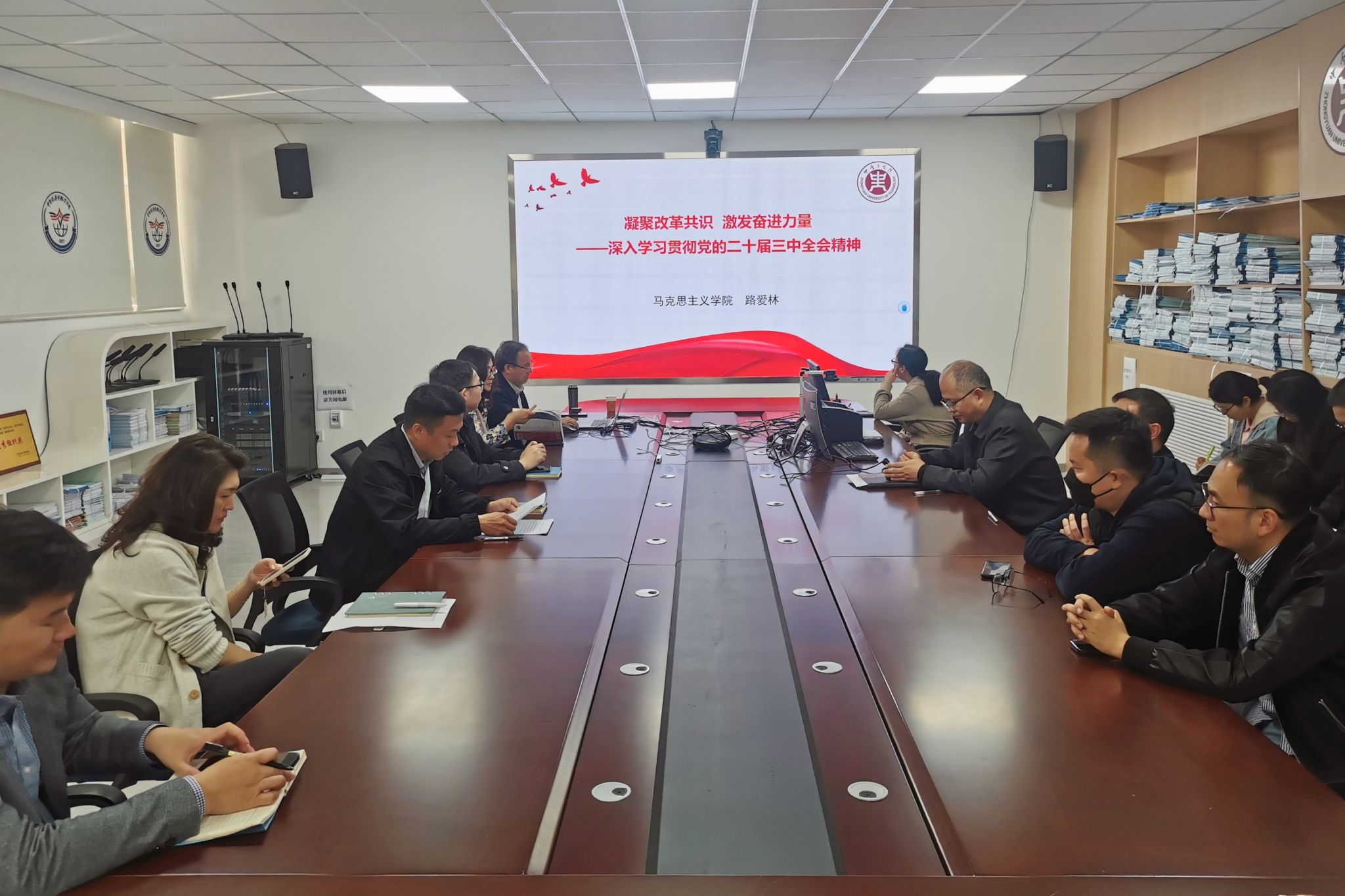 10月29日,william英国中文官网召开党的二十届三中全会精神宣讲会,我校理论宣讲团成员、马克思主义学院副院长路爱林应邀作专题宣讲。学院全体党员干部参加,学院党总支书记轩信飞主持宣讲会。