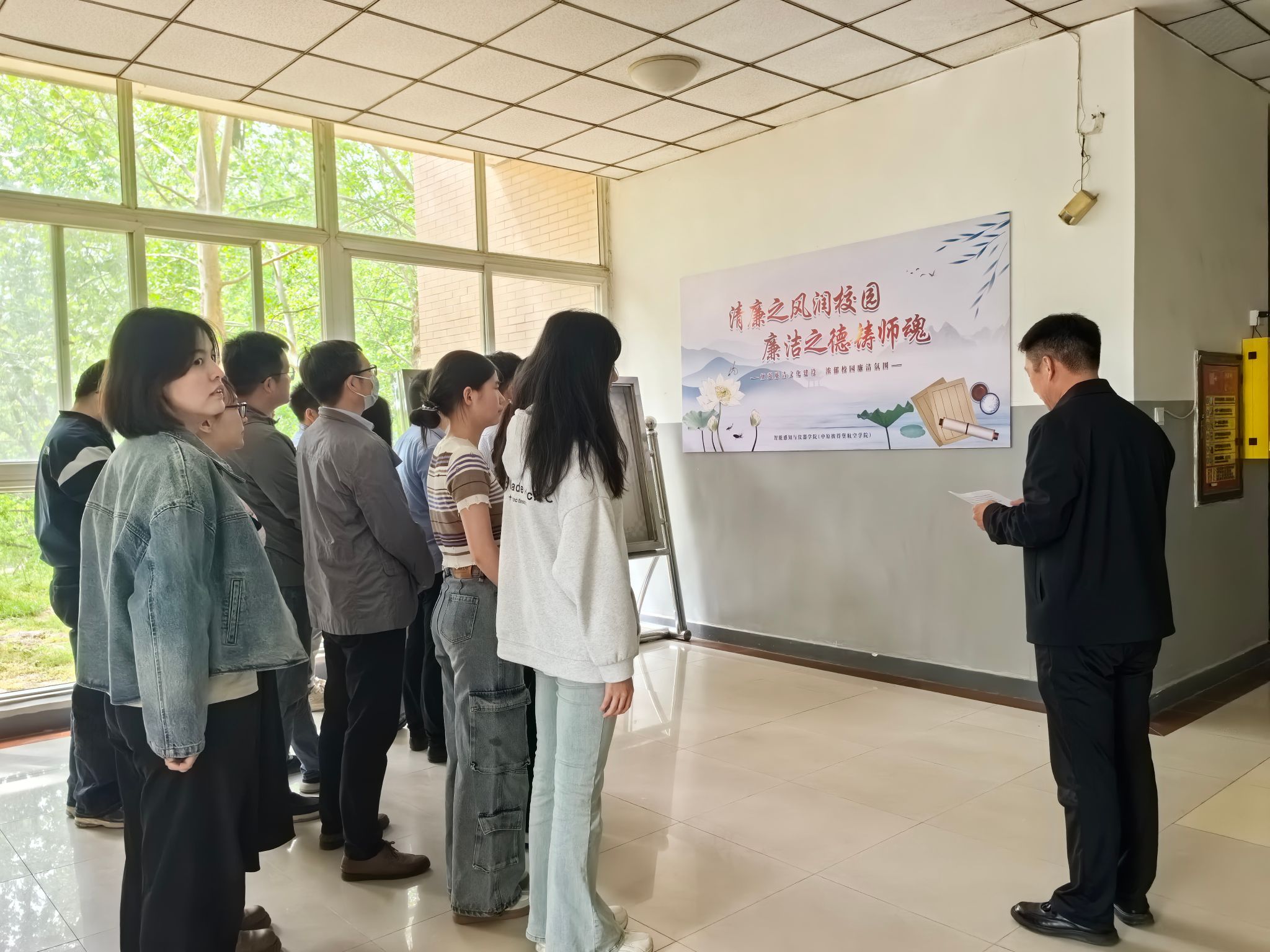 为深化巡察整改成效,推进全面从严治党向纵深发展,4月15日,中原彼得堡航空学院党总支结合学习教育学查改工作要求,组织全体党员干部赴学院清廉校园文化墙前开展主题党日活动。