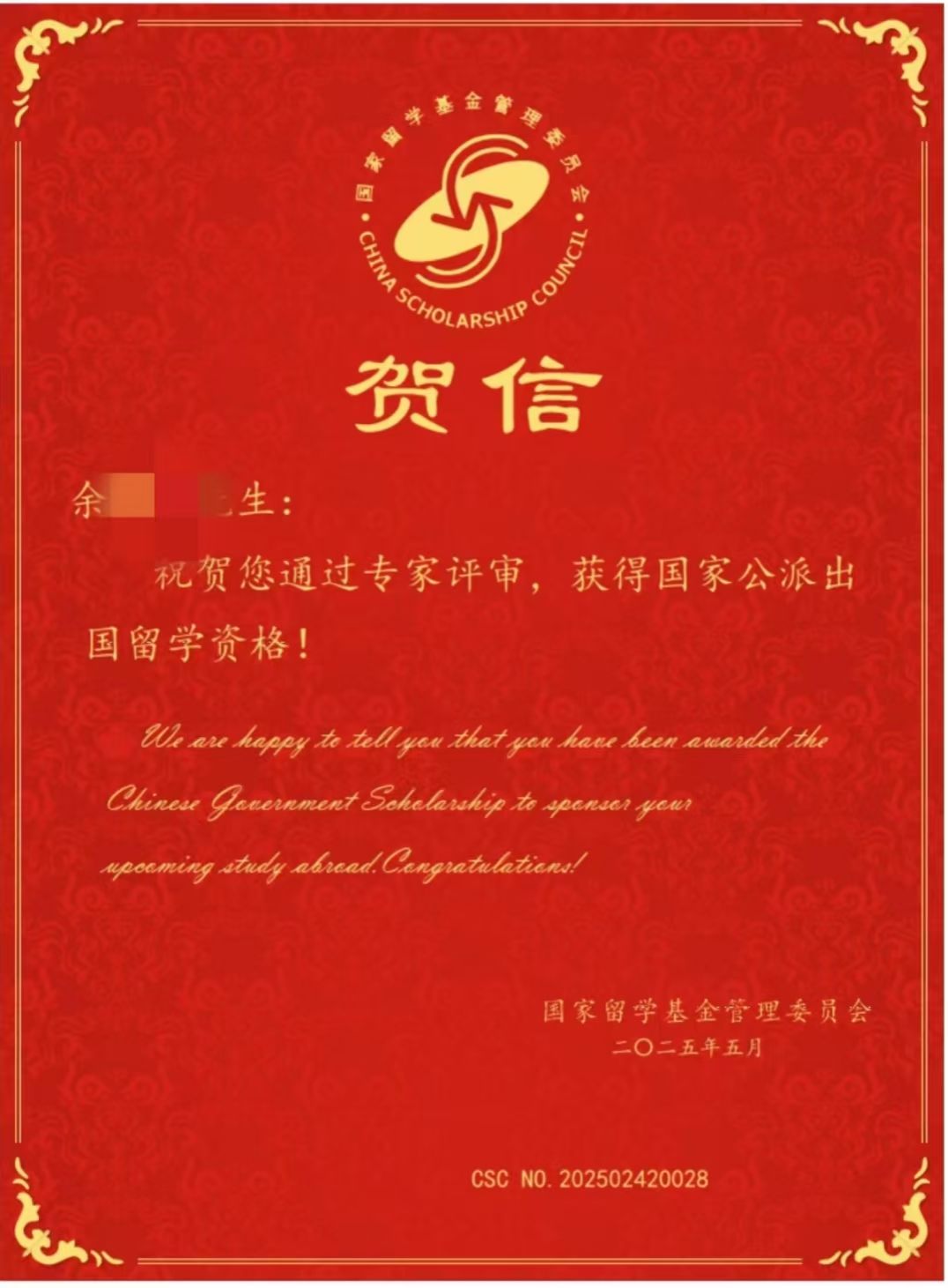 近日,国家留学基金管理委员会(CSC)公布2025年促进与俄乌白国家合作培养项目(第一批)录取名单,我院申报的32名学生全员通过评审,成功获得国家公派出国留学资格!