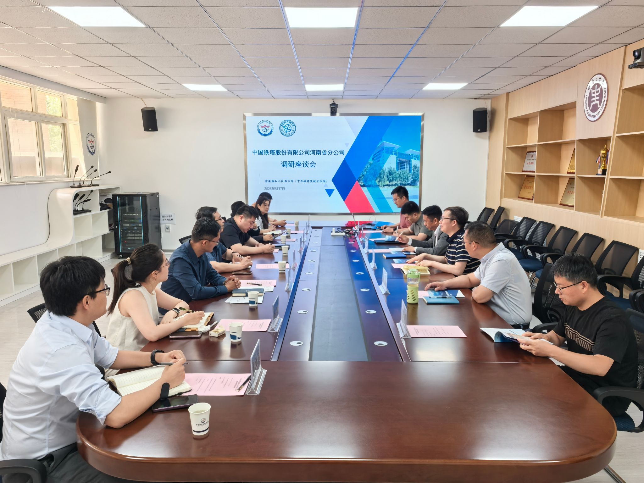 5月7日,中国铁塔股份有限公司河南分公司科技创新部毕猛主任一行到我院开展科研合作。我院党总支书记轩信飞、执行院长温盛军、副院长王海泉、相关系部主任以及专业教师参加活动。座谈会由温盛军主持。